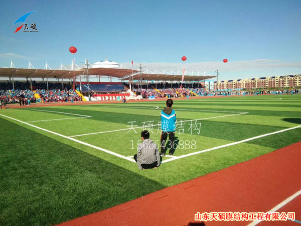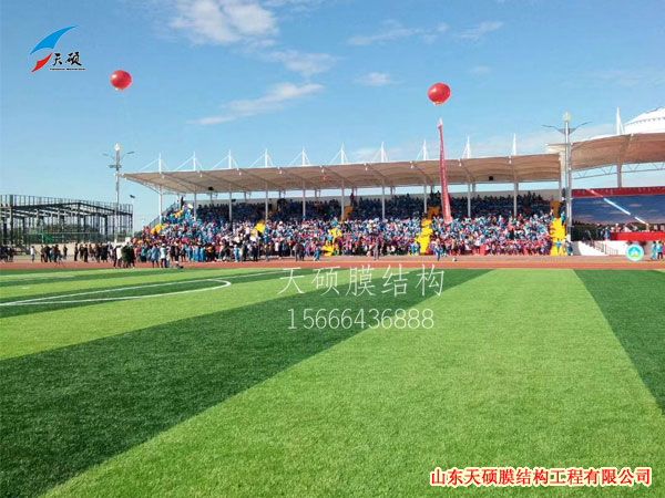 它以其新穎獨特的建筑造型,良好的受力特點,成為大跨度空間結構的主要形式之一。膜結構看臺是一種全新的建筑結構形式,它集建筑學、結構力學、精細化工與材料科學、計算機技術等為一體,具有很高技術含量。其曲面可以隨著建筑師的設計需要任意變化,結合整體環境,建造出標志性的形象工程。